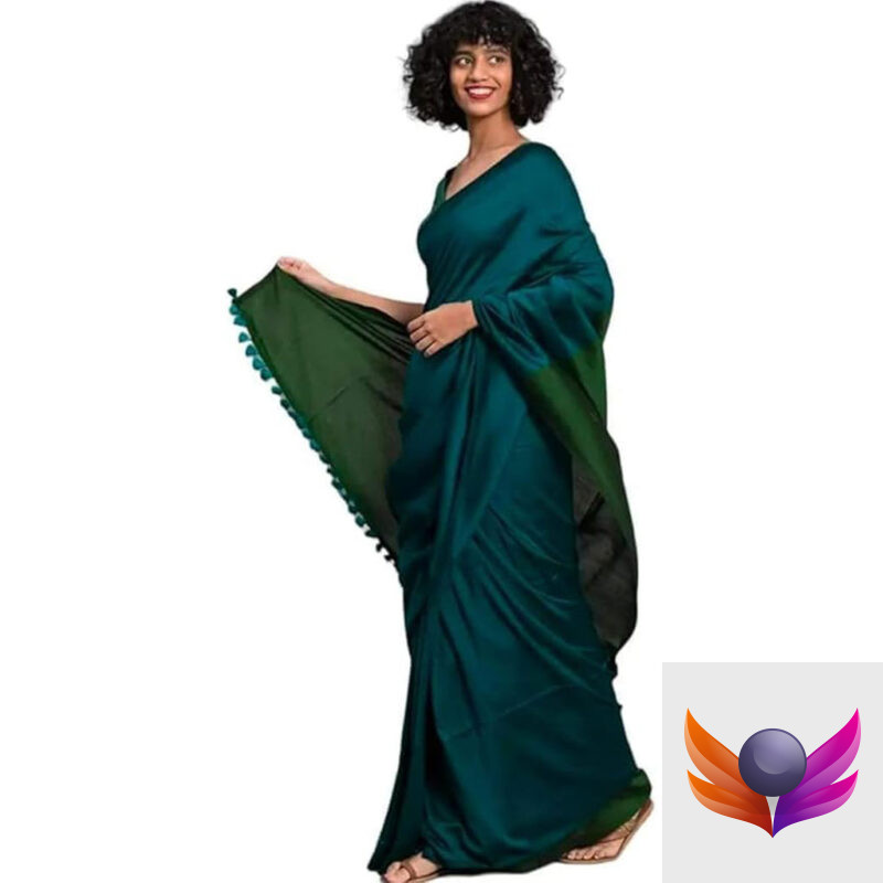 Women’s Traditional Handloom Cotton Saree with Tassels and Unstitched Blouse Piece