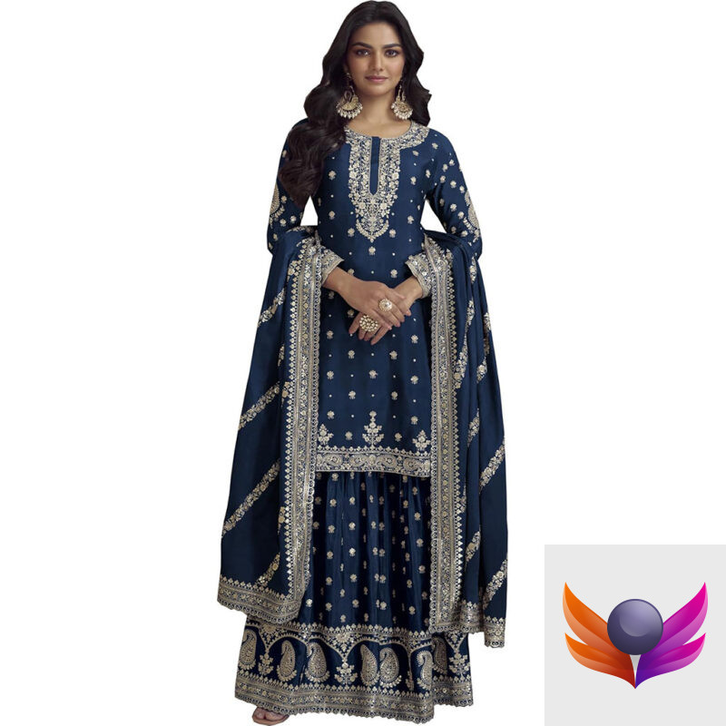 Women’s Stitched Wedding Salwar Kameez with Plazzo and Dupatta – 3-Piece Suit